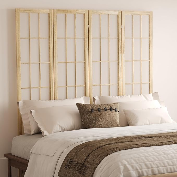 5.6FT Room Divider and Folding Portable Partition Screen, Chinese Japanese Shoji Style for Room Separation - 4 Panel (Natural)