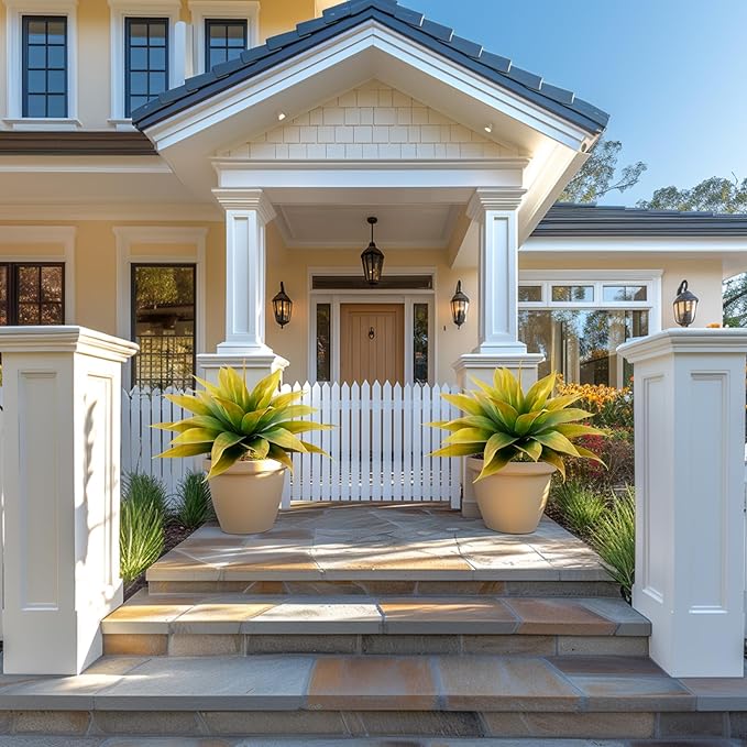 - π΅About The Large Fake Plants Color: natural yellow , replica of the real agave color, delicate and durable, outdoor sun protection.Low Maintenance Unlike real plants, these artificial agave planters require no watering, pruning, or fertilizing. faux succulent outdoor plant enjoy the beauty of greenery without the hassle of maintenance.
