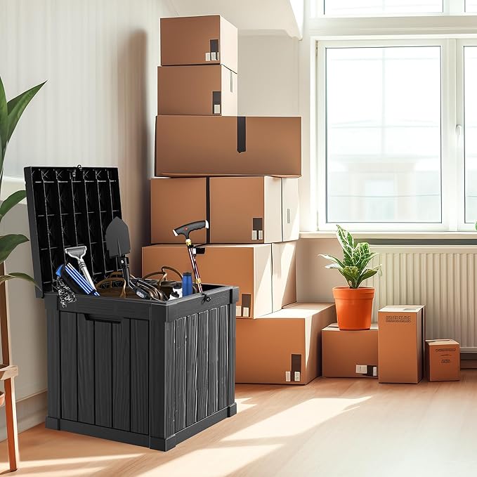 • Weatherproof material: This deck box is made of environmentally friendly polymer resin. It has better water and UV resistance than traditional wood. There is no need to worry about it fading and falling off in the coming years. Years of virtually no maintenance are required.