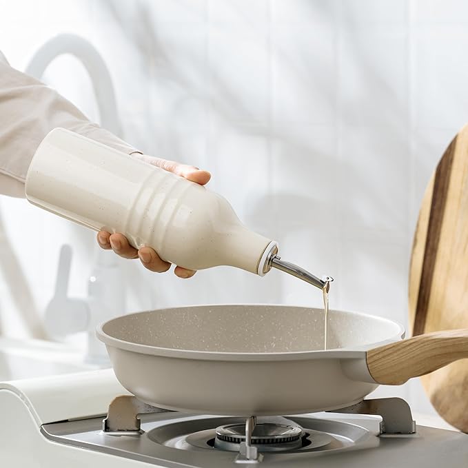 - ELEGANT OLIVE OIL DISPENSER BOTTLE - Our 16-ounce ceramic oil dispenser is handmade and batch-fired at extremely high temperatures, forming a smooth glaze and providing a resilient