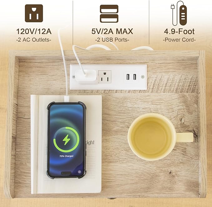 - Multifunctional Nightstand: This modern nightstand with the charging station is equipped with 2 USB Ports and 2Ã3-Prong Power Outlets that can meet your needs to charge phones, iPads, laptops, and desk lamps easily. The 4.9-foot-long electrical cord makes phones, and ipads when charging that also is within your armâs reach