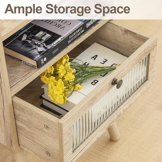 - Strudy and Reliable Structure: The modern bedside table is crafted from premium MDF with smooth and water-resistant coating, and four solid wood legs that strengthen the stability and durability of this nightstand, ensuring long-term use. The tabletop with edge protection designed, which can effectively prevent table items from falling