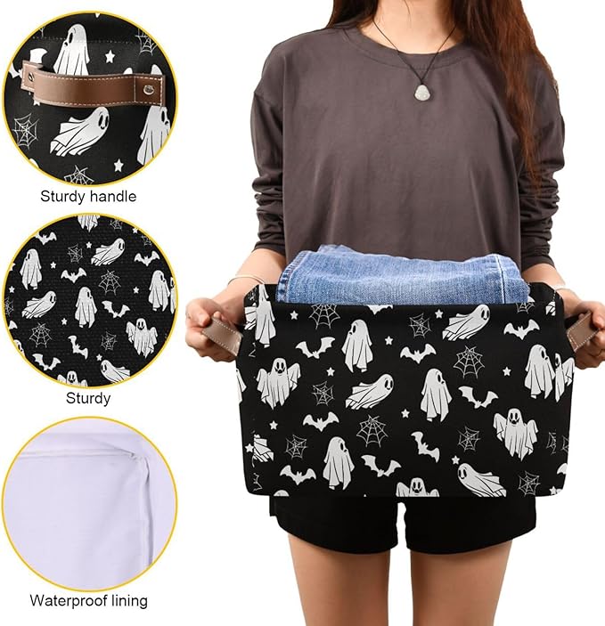Collapsible Storage Basket Bin Happy Halloween Organizer Cube with Handle, Canvas, Black