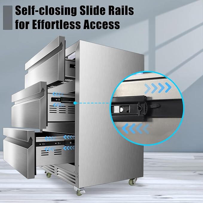24 Inch Upgraded Three-Drawer Beverage Fridge, Weather Proof Outdoor Stainless Steel Beverage Refrigerator, Under Counter Built-in Beverage Cooler for Home & Commercial Use