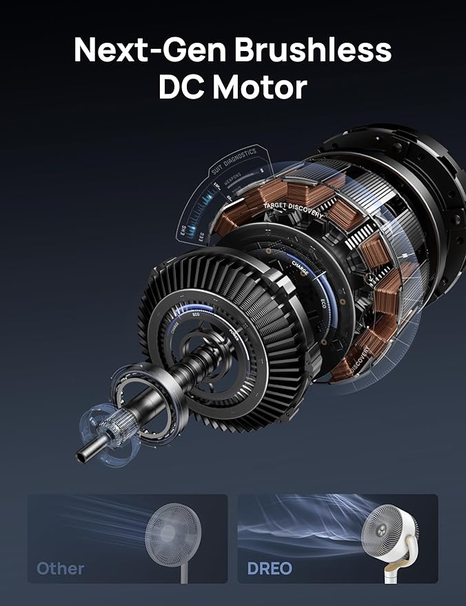 - ððĄðĐð§ð ððŠðððĐ ðŋðū ððĪðĐðĪð§: Don't sacrifice performance for quietness, it reduces noise down to 20dB, making it the ideal quiet fan for bedtime or working without distractions. Thanks to the DREO brushless DC motor combined with turbine style blade technology, it circulates the air quickly throughout the room. And the DC motor produces 30% more air using 40% less energy.