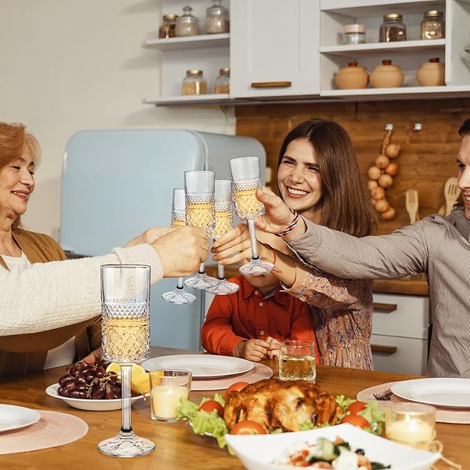 • Large Capacity: Each crystal champagne glasses can hold up to 7oz, perfect for sipping champagne, mimosa, spumante and other sparkling wines. Dishwasher safe and easy to clean.
