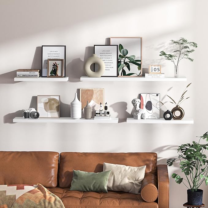 - Multi-scene & Functional - Our wall-mounted shelves are not only aesthetically pleasing but also highly functional, making them an ideal choice for various settings in your home. Use them to showcase your collection, display books, or highlight prized possessions. These shelves are perfect for exhibiting photo frames, small plants, models, or audio equipment in your living room, office, or study.