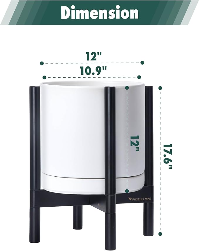 • 12 Inch Pot with Stand Set: Planter size: 11.8"Diameter x 11.8"H; pot with stand total height: 18.5 inch.