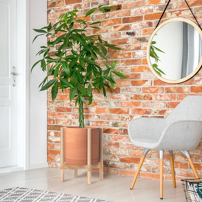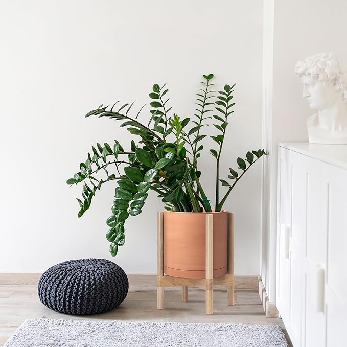 • A Complete Set: Mid-century terracotta planter, combined with a natural color, sculptural, solid wood stand that match perfectly together and looks great in anywhere.