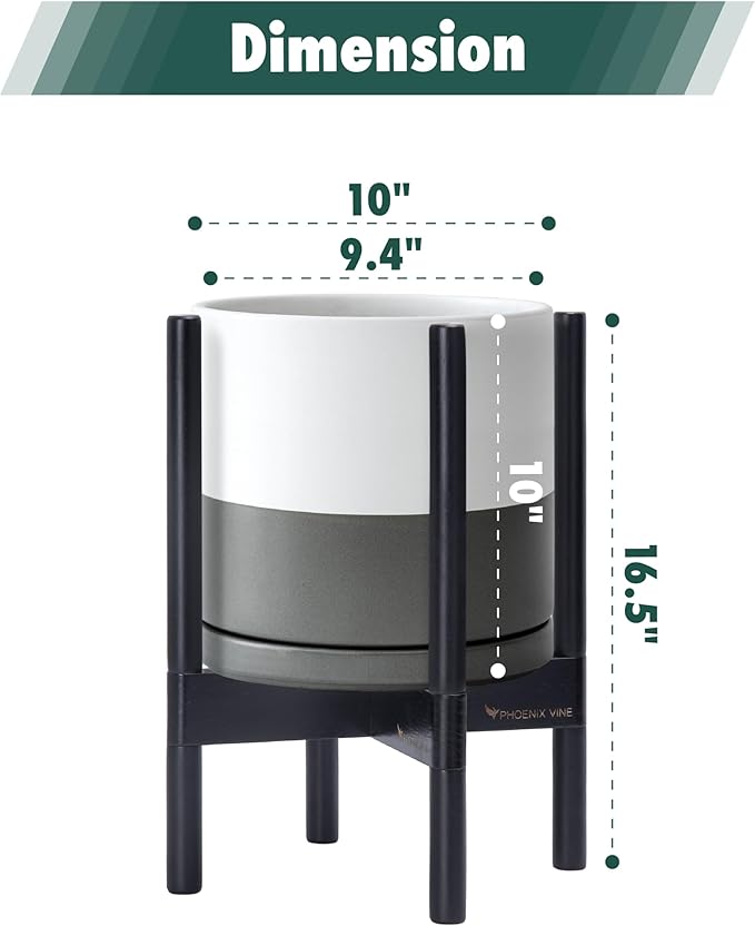 • 10 Inch Pot with Stand Set: Planter size: 10"Diameter x 10"H; pot with stand total height: 16.5 inch.