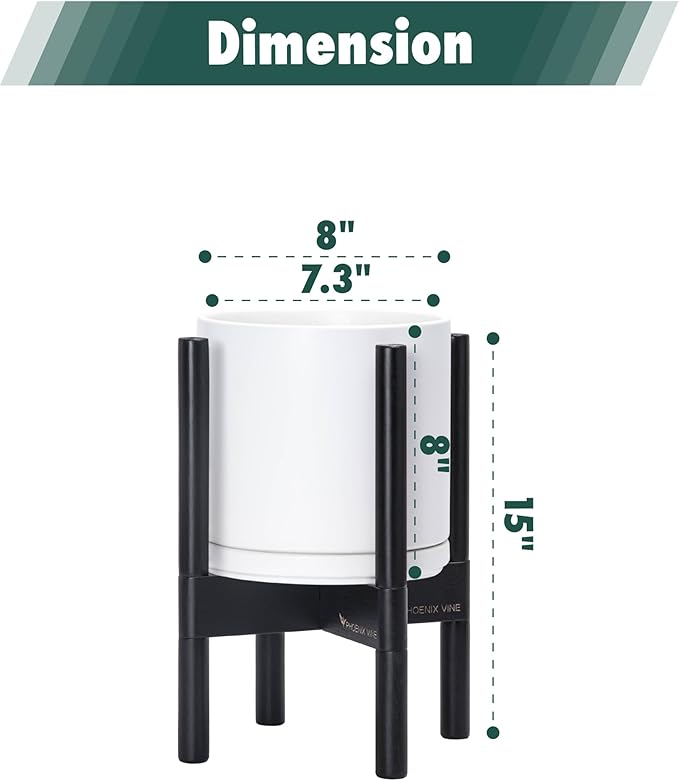 • 8 Inch Pot with Stand Set: Planter size: 8"Diameter x 8"H; pot with stand total height: 15 inch.