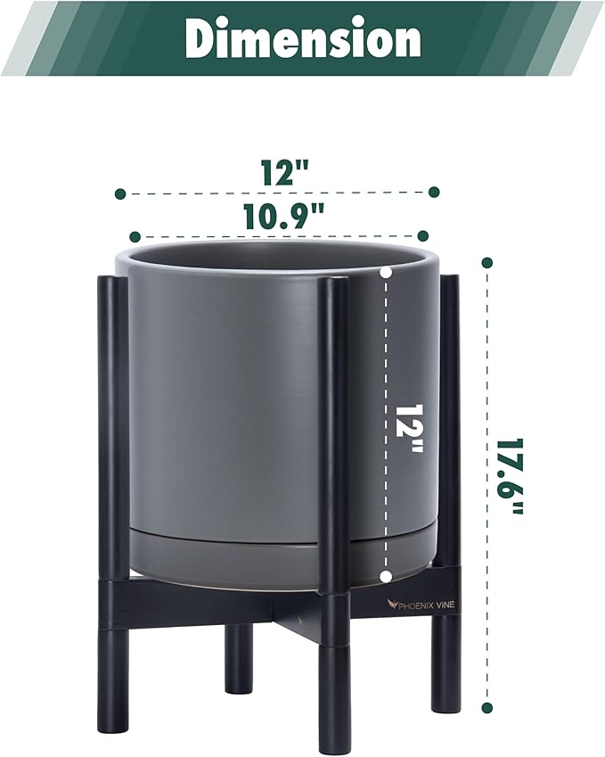 • 12 Inch Pot with Stand Set: Planter size: 11.8"Diameter x 11.8"H; pot with stand total height: 18.5 inch.