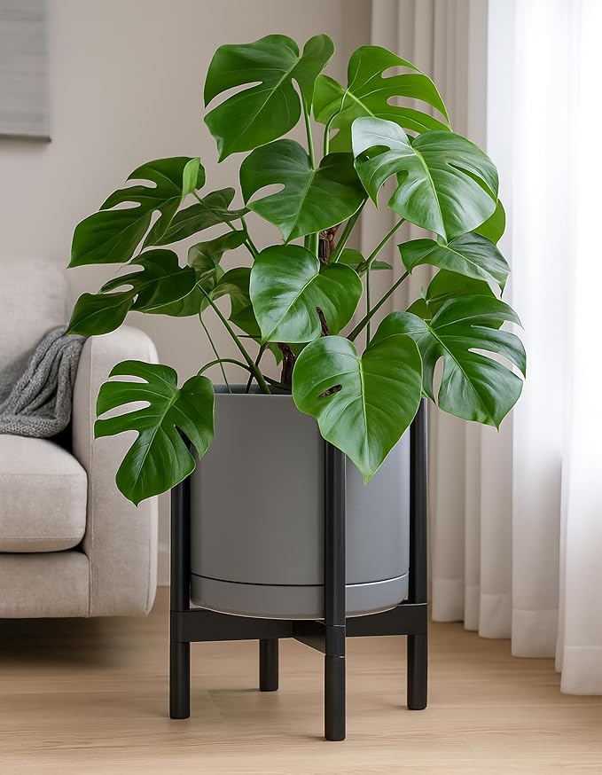• A Complete Set: Mid-century ceramic planter, combined with a ebony wood stand that match perfectly together and looks great in anywhere.