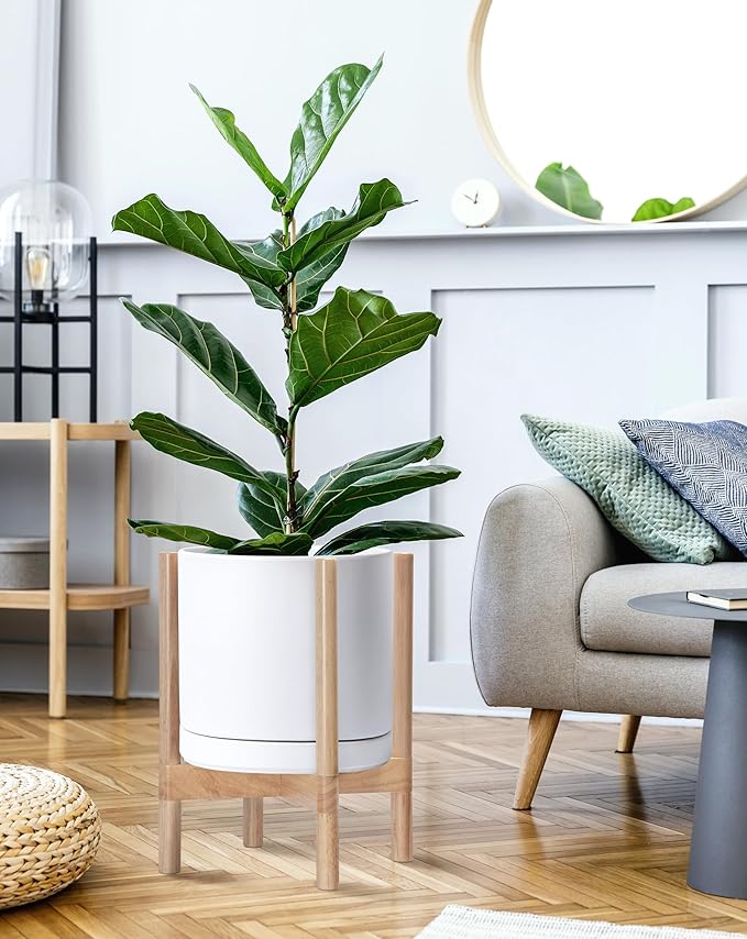 • A Complete Set: Mid-century ceramic planter, combined with a natural color, sculptural, solid wood stand that match perfectly together and looks great in anywhere.