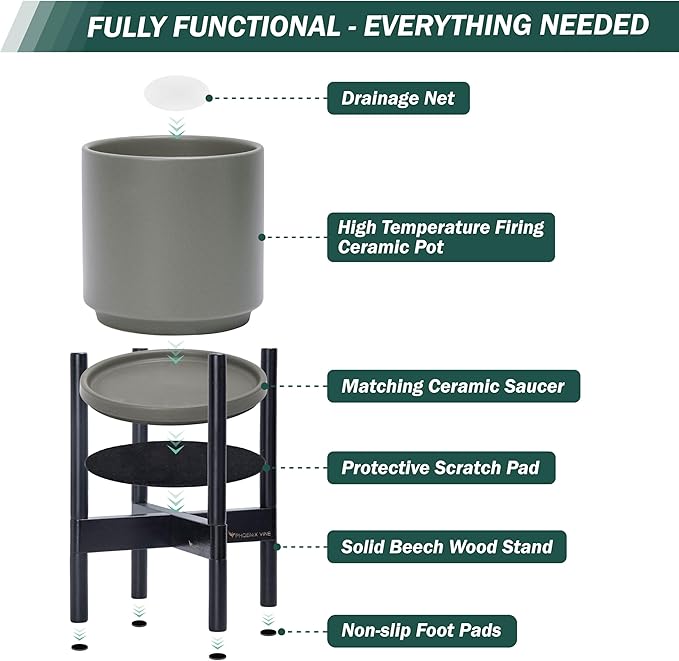 • 10 Inch Pot with Stand Set: Planter size: 10"Diameter x 10"H; pot with stand total height: 16.5 inch.