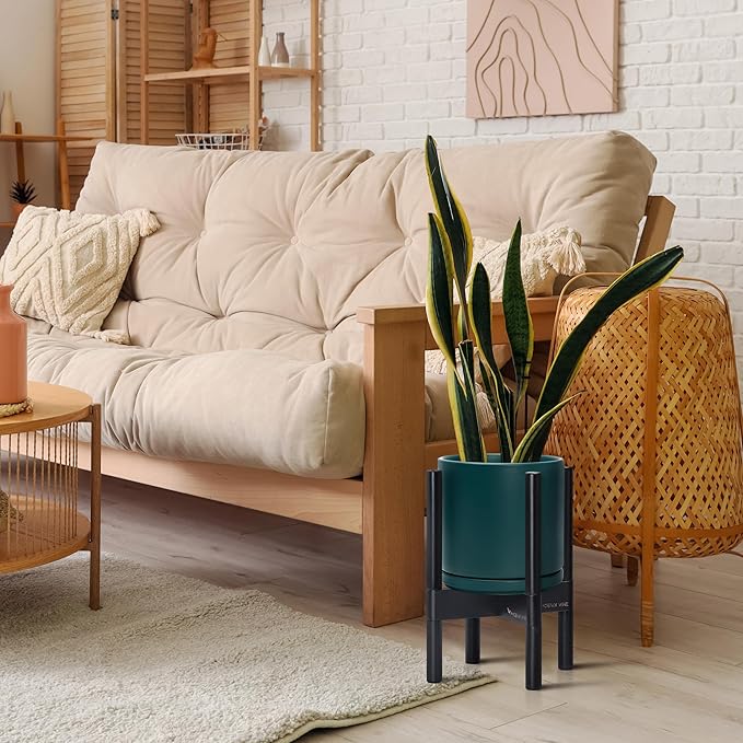 • A Complete Set: Mid-century ceramic planter, combined with a ebony wood stand that match perfectly together and looks great in anywhere.