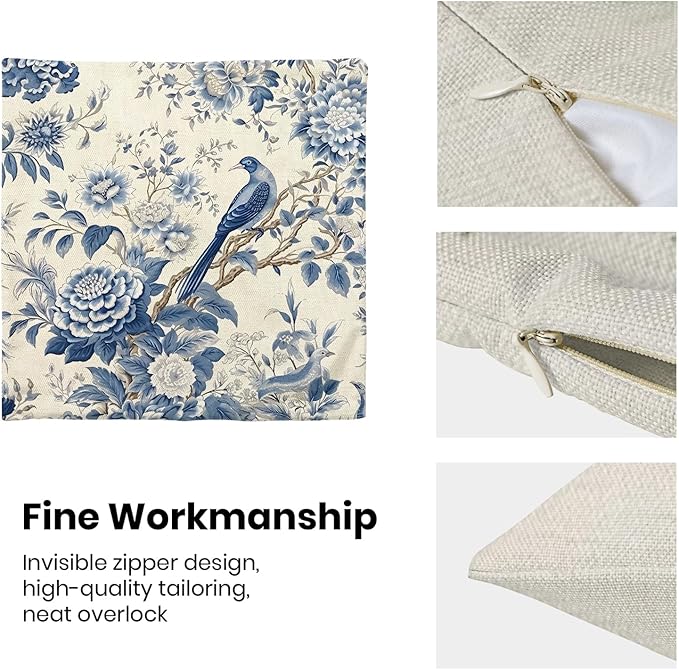 - 【Square Pillow Covers Size】 Chinoiserie flower birds pillow case set includes 2 pcs of farmhouse couch pillow covers (NO Pillow). Home decor farmhouse pillow covers measures 18x18 inch/ 45x45 cm. All the floral decor throw pillow covers have a hidden zipper. It is easy to insert or remove the pillow core to replace the spring pillowcase. Easy to clean and wash, sturdy and not easy to damage.