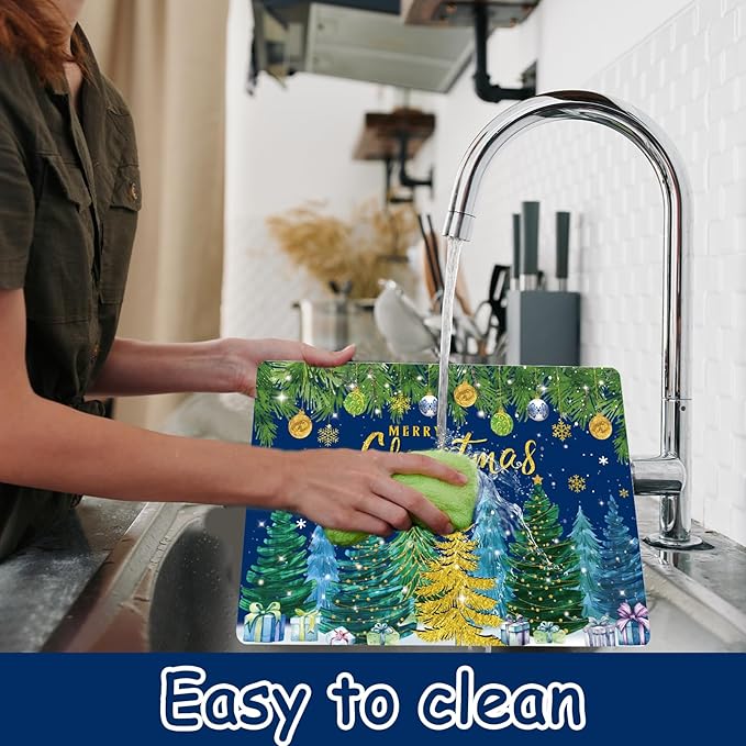 - Easy to clean: Our Christmas tree house table mats are designed for easy maintenance and can be quickly wiped clean with a damp cloth. These convenient Christmas pine trees placemats enhance your mealtime experience by saving you time and effort, making them great for both indoor and outdoor dining occasions.