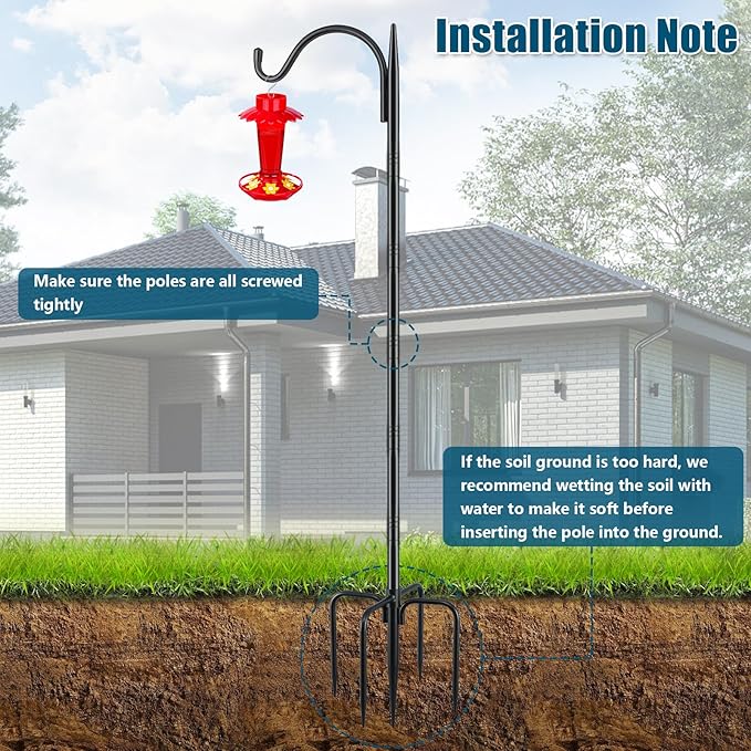 - Adjustable Height: The small shepherds hooks are available in 2 sizes, 47 in and 63 in, suitable for different garden space layout needs. Specifically, the 47-inch model can be adjusted down to 31 inches by removing one 16-inch pole section, while the 63-inch model can be adjusted to 47 inches or 31 inches by removing 1 or 2 sections respectively