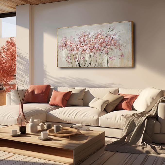 • Size and Package: White and pink pictures wall decor approx 24"x 48"; Suitable size makes it a great nature decor addition to your home. Easy to hang - All Signs Come With Pre-Installed Hooks.