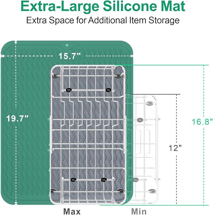 - Anti-slip and Anti-scratch and Steady: Unlike others with parallel sink structures, our sink drying rack features a sunk design that provides superior stability, reducing the risk of slipping. The sink drying rack features anti-slip beads on both handles to prevent it from sliding while hanging over the sink. The bottom 4 feet are equipped with non-slip rubber sleeves to protect your counter and sink from scratches.