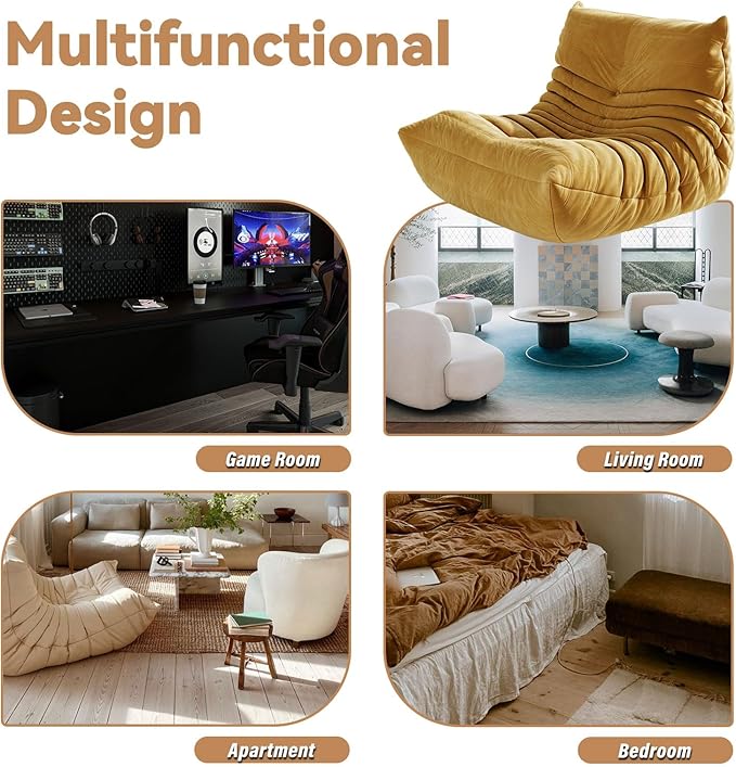- [ððð§ðĻððĐððĄð ððĻð]: Bean Bag Chairs doesn't need a wall for back support, making it perfect for your living room, reading corner, gaming and movie space, home office, apartments, and gazebos. It brings you unparalleled comfort and a delightful experience.
