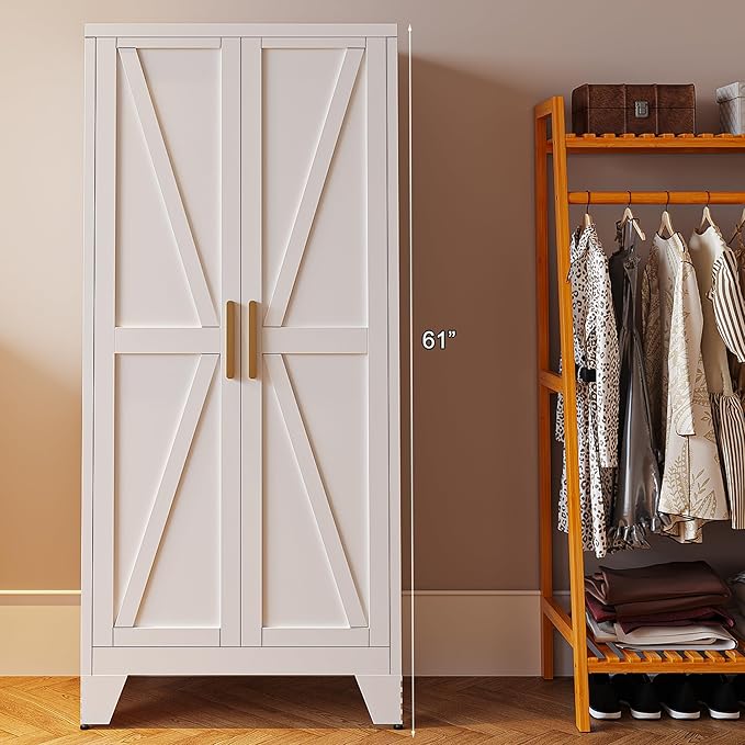 • Versatility: The 61-inch barn-style steel office cabinet is a classic and practical storage option for any room, from home offices to bathrooms, providing ample space for documents, kitchenware, towels, and more, while adding rustic charm.