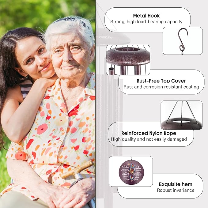 - THOUGHTFUL GIFT: The sympathy wind chime comes with exquisite gift box securely packaged, also you can choose a gift card, customized plus gift card which is excellent condolence gift for the loss of a dad, mom, son, daughter, brother, sister, bring comfort to them.