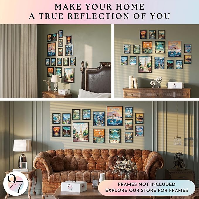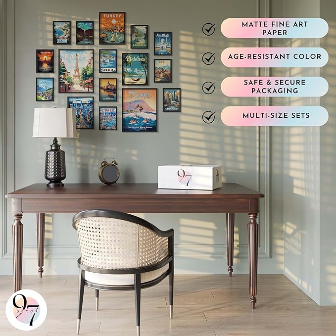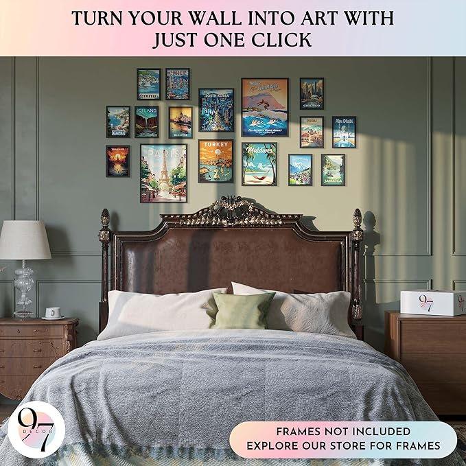 • Travel Poster: Dive into the allure of exploration with our vintage city posters set, featuring 2 Pcs 11x14", 3 Pcs 8x10, 11 Pcs 5x7. This collection brings the world to your walls with its vibrant depiction of travel wall decor and travel wall art.