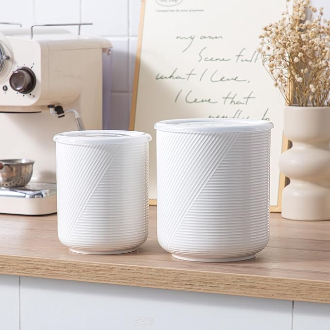 Food Storage Containers with Airtight Lids: Ceramic Canister Sets for Kitchen Countertop - Porcelain Jar for Coffee Tea Flour Sugar Rice Cookies Candy - White (42+75 oz)