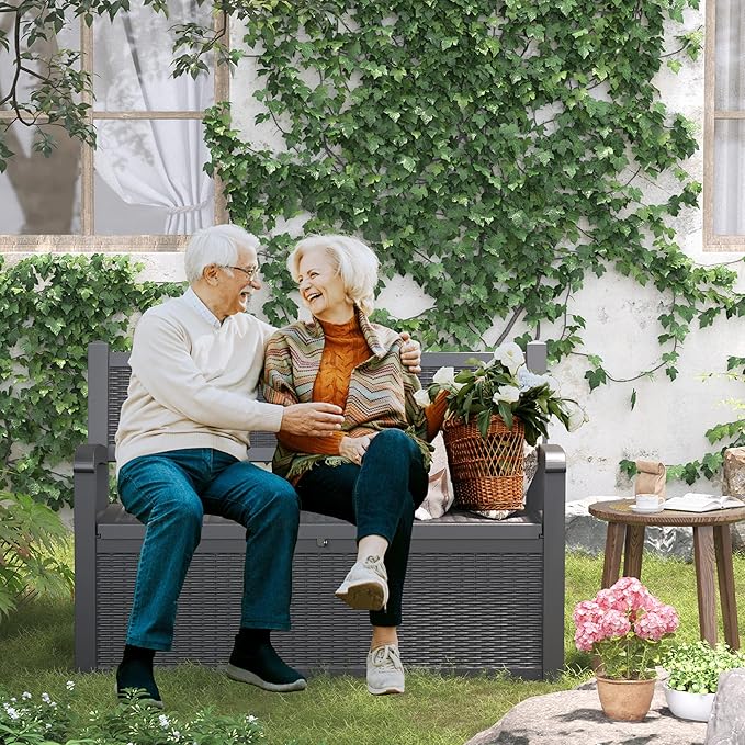 • Spacious Storage Capacity - This 70 gallon storage bench deck box provides ample space to store your patio furniture cushions, garden tools, pool accessories
