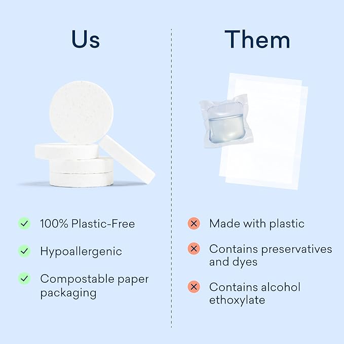 - CLEAN, PLANET-FRIENDLY LAUNDRY ESSENTIALS. Ditch conventional plastic laundry pods and sheets with harsh ingredients and enjoy a safer-for-family and healthier-for-planet kind of clean with our full lineup of powerful and plastic-free laundry essentials. Get a powerful clean with 100% plastic-free tablets, plus a boost of stain-removing power, and a wrinkle and static-free load. Laundry kit includes Laundry Detergent Tablets, Oxi Laundry Booster, and Dryer Balls.