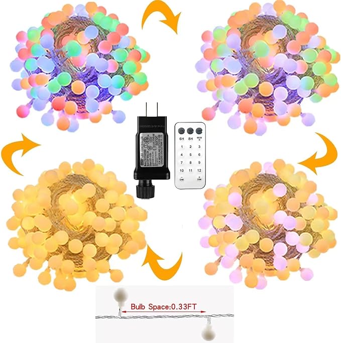 • Multicolor and warm white globe string lights: More color options for more scenarios.Create a warm and romantic atmosphere for you