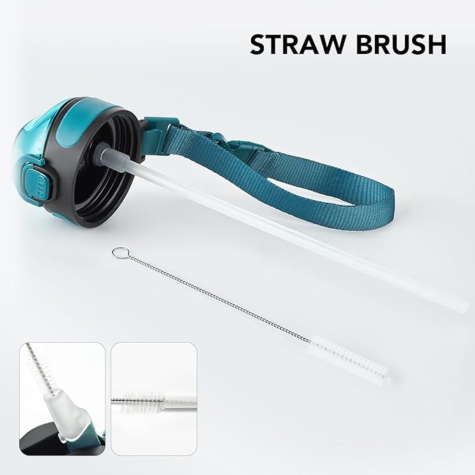 - Humanized Design: The one-hand operation button allows for easy access to water. Highly suitable for boys and girls, and all ages. The flip-top lid of the insulated bottle is used a secure lock, making it dust-free and leak-proof. The included straw brush makes maintaining your bottle's cleanliness uncomplicated and efficient.