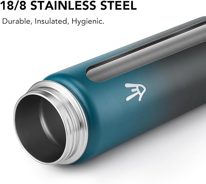 - Premium Quality: Through the upgraded, 24 oz insulated water bottleâs inner wall is made of food-grade 18/8 Stainless steel, and the outer wall is 201 stainless steel. Rest assured, our leakproof sports water bottle is 100% BPA-free, non-toxic, odorless, rust-proof, and absolutely safe for daily use.