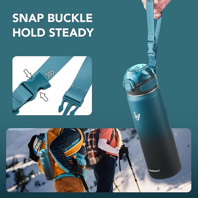 - Easy Travel: With its generous 24 oz capacity, the water bottle with snap buckle is perfect for all your outdoor adventures, such as hiking, camping, and sporting events. Stay hydrated and enjoy your journey hassle-free with this versatile companion.