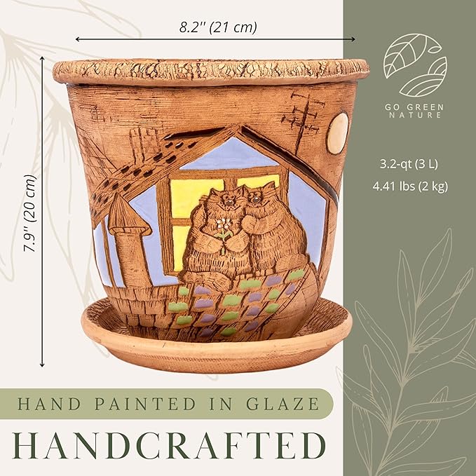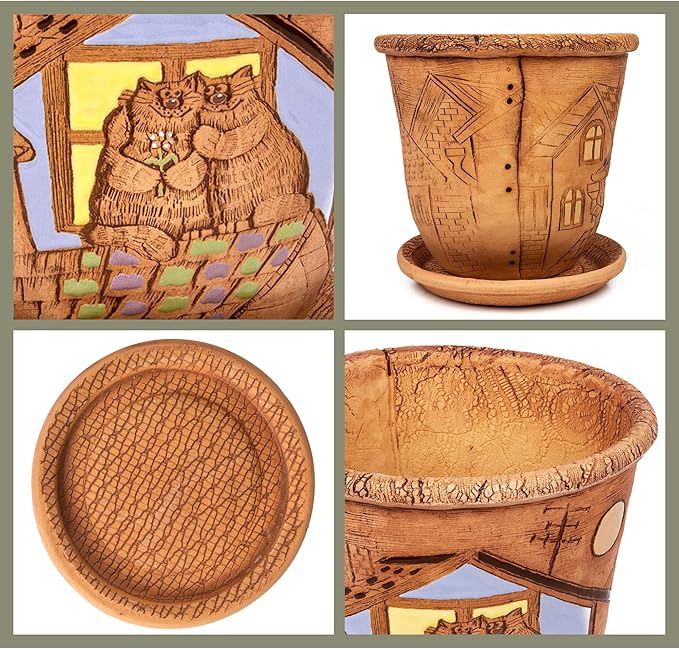 • 🌺Material: The flower pot is handmade from high-quality ceramics. Natural clay materials allow air and water movement through the sides of the pot. Air movement stimulates root growth, which results in healthier plants. Clay pots improve soil aeration and protect your plants from staying wet for too long.