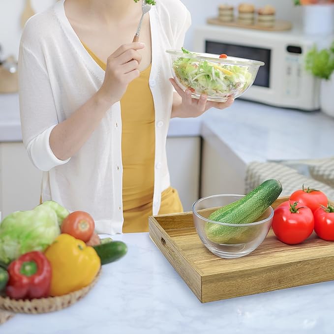 • SERVE WITH STYLE: Acacia wood serving tray is versatile, serving food on dining tables, providing snacks on coffee tables, providing a lazy breakfast, or relaxing after a hard day.