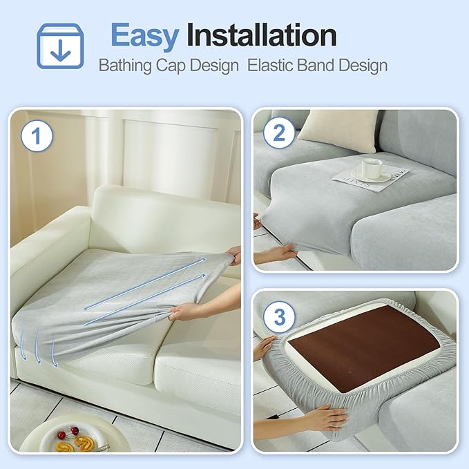 - 【Easy to install】The couch seat covers are easy to install and can be completed in just a few minutes. The cover comes with elastic bands that securely fix it to the sofa, keeping it in the right position. Before ordering, please measure the size of your furniture to ensure a proper fit. This cover is suitable for both T-cushion and box cushion styles and is highly recommended for use with both leather and fabric furniture.