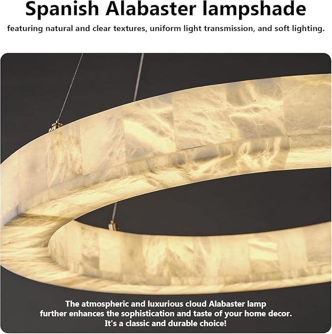 - Natural Spanish Alabaster: Our dining room chandelier over table are made from spanish alabaster, a natural stone solidified over millions of years by volcanic lava. It is carefully selected and hand-polished to give it a sophisticated and charming look while enhancing the natural beauty of the stone.