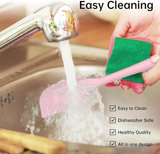• 【Easy to Clean】: The spatulas for kitchen use in a seamless one-piece shape, comfortable to hold, can be placed in the dishwasher, with a hanging hole design, and can be hung after cleaning.