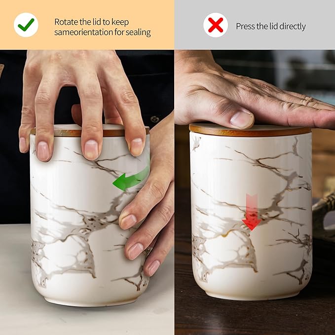 • Durable & Easy Maintenance | These durable ceramic canisters are resistant to stains and odors. The smooth glaze finish ensures easy cleaning. (Wooden lids should be hand-washed and dried properly.)