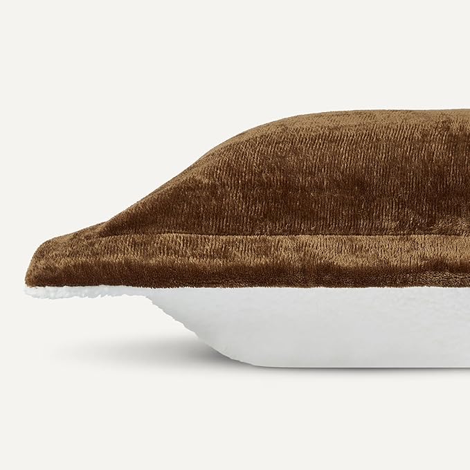 • Reversible with soft micromink polyester in Brown on one side and white faux sherpa fleece on the reverse