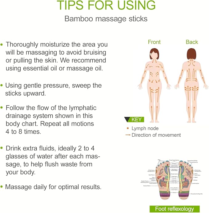 - Easy to Useâ RECOMMENDED BY PHYSICAL & MASSAGE THERAPISTS: standing or sitting and reach 95% of muscles by yourself (100% with a partner or professinal!). Lymphatic drainage massager is designed for physical therapy, suitable for targeting specific muscle groups, neck, whole body, provide enough pressure for deep tissue work. Hot bamboo gets rid of knots for myofascial release & trigger point therapy, increase blood circulation, reduces soreness, stiffness & pain, and shape a perfect body .They provide adequate pressure for effective massage. Suitable for self-massage, professional massage or massage with your partner.The massage sticks can be used with massage oil for the best relax.