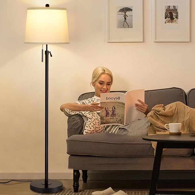 - Adjustable Height Modern Floor Lamp: This tall standing lamp can be adjusted between 55-65" to adapt to the best lighting in any situation, meeting the needs of different age groups, such as children, adults and the elderly. With the most flexible adjustable height pole, this black floor lamps illuminate a larger area of ââyour space, whether at home or in the office, perfect for lighting in different scenarios