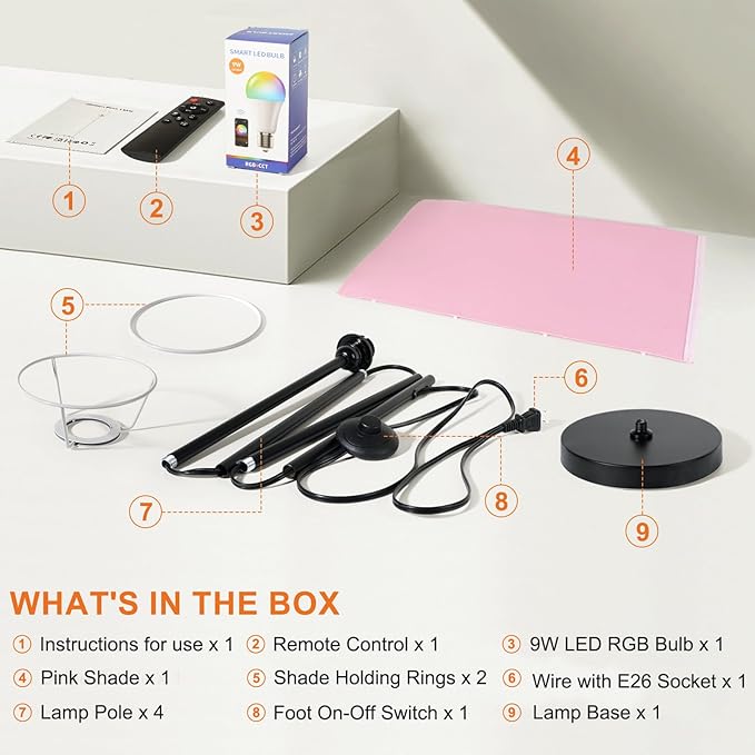 - 【Easy installation 】The tall floor lamp is easy to install—no extra tools are needed. Just follow the instructions to screw in all the parts, and you'll be ready to enjoy customizable lighting! Ideal for gifts.