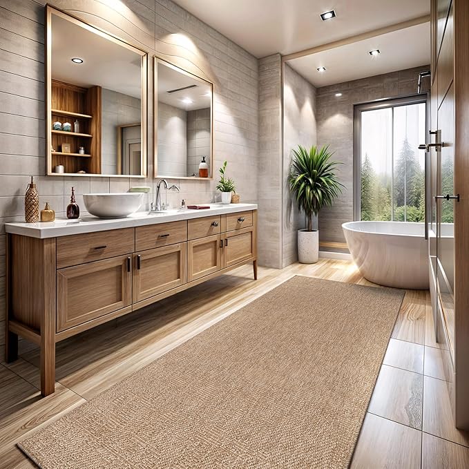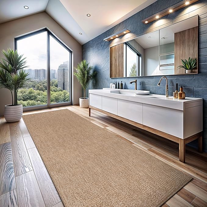 - [ EASY JUTE RUG ] Experience the enchantment of a resilient rug mimicking the appearance of natural jute, courtesy of our latest Easy-Jute rugs. (Jute-free in reality) Crafted from secure polypropylene, these rugs are resistant to cracking, ensuring they remain free from scratches, shedding, or unraveling over time.