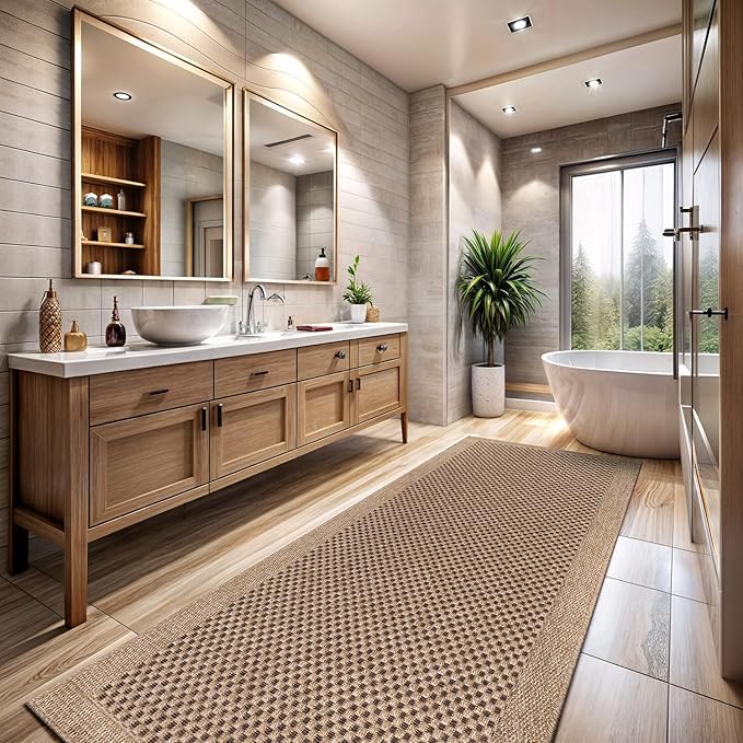 - [ EASY JUTE RUG ] Experience the enchantment of a resilient rug mimicking the appearance of natural jute, courtesy of our latest Easy-Jute rugs. (Jute-free in reality) Crafted from secure polypropylene, these rugs are resistant to cracking, ensuring they remain free from scratches, shedding, or unraveling over time.