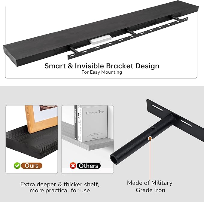 • Space-Saving Solution: Maximize storage without occupying floor space. Our floating wall shelves reduce clutter and enhance wall decor, perfect for compact spaces and any interior style.