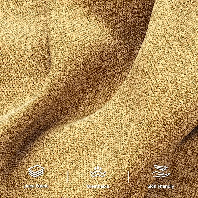 89” Futon Sofa Bed, Linen Comfy Futon Couch Bed with 2 Square Pillows, Convertible Sleeper Sofa with Adjustable Backrest& Armrests, Modern Loveseat Sleeper for Living Room, Bedroom, Yellow